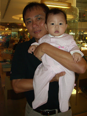 couldn't kept the surprise long from me, complaining about his hunger and much battle with his male ego, he finally gave me the veto to accompany him in the queue.. so Leona and I rushed down to Raffles City just in time to place our orders.. only then we know Raphael, Leona's boyfriend, was queuing too. he tagged along Derrick's order.. hehe..
